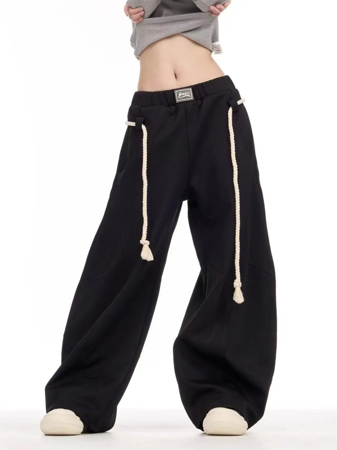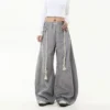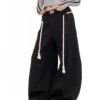 Be the first to review “Black Drawstring Casual Pants Women Street Retro Harajuku Loose Cross Legged High Waist Slim Solid Color Sports Straight Pants” Cancel reply