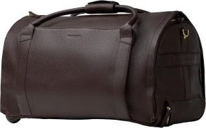 Wool & Oak – NOVA Large Duffle Bag with Wheels – Carry On Garment Duffle Bags for Travel. Overnight. Hospital. Travel Bags for Women & Men with Shoe Compartment & Tech Pocket (Leather. Chocolate)